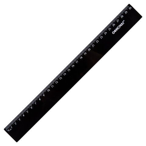 Линейка пластиковая 30 см ОФИСМАГ, непрозрачная, черная, 210778