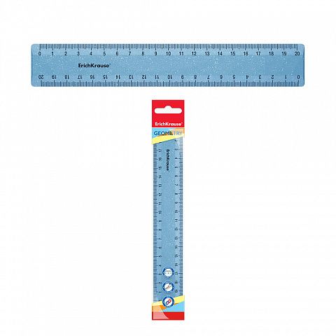 Линейка пластиковая ErichKrause® Glitter, 20см, голубой , во флоупаке