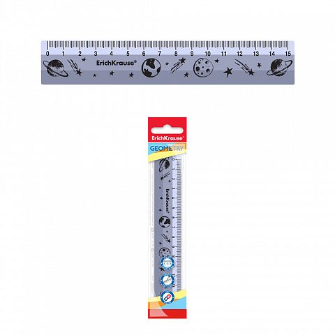 Линейка пластиковая ErichKrause Outer Space, 15см, серебряная, во флоупаке