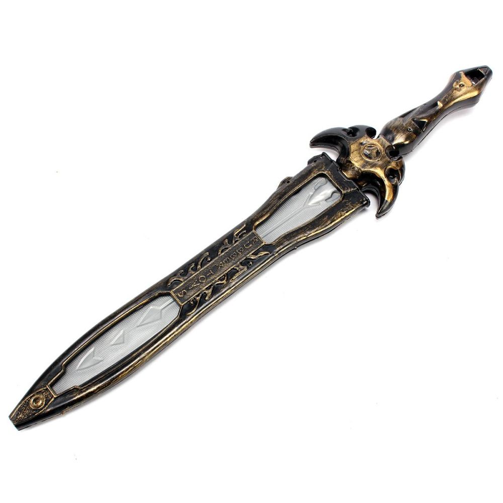 Он выполнен в стильном ретродизайне. Меч имеет прямое лезвие и резную рукоятку.