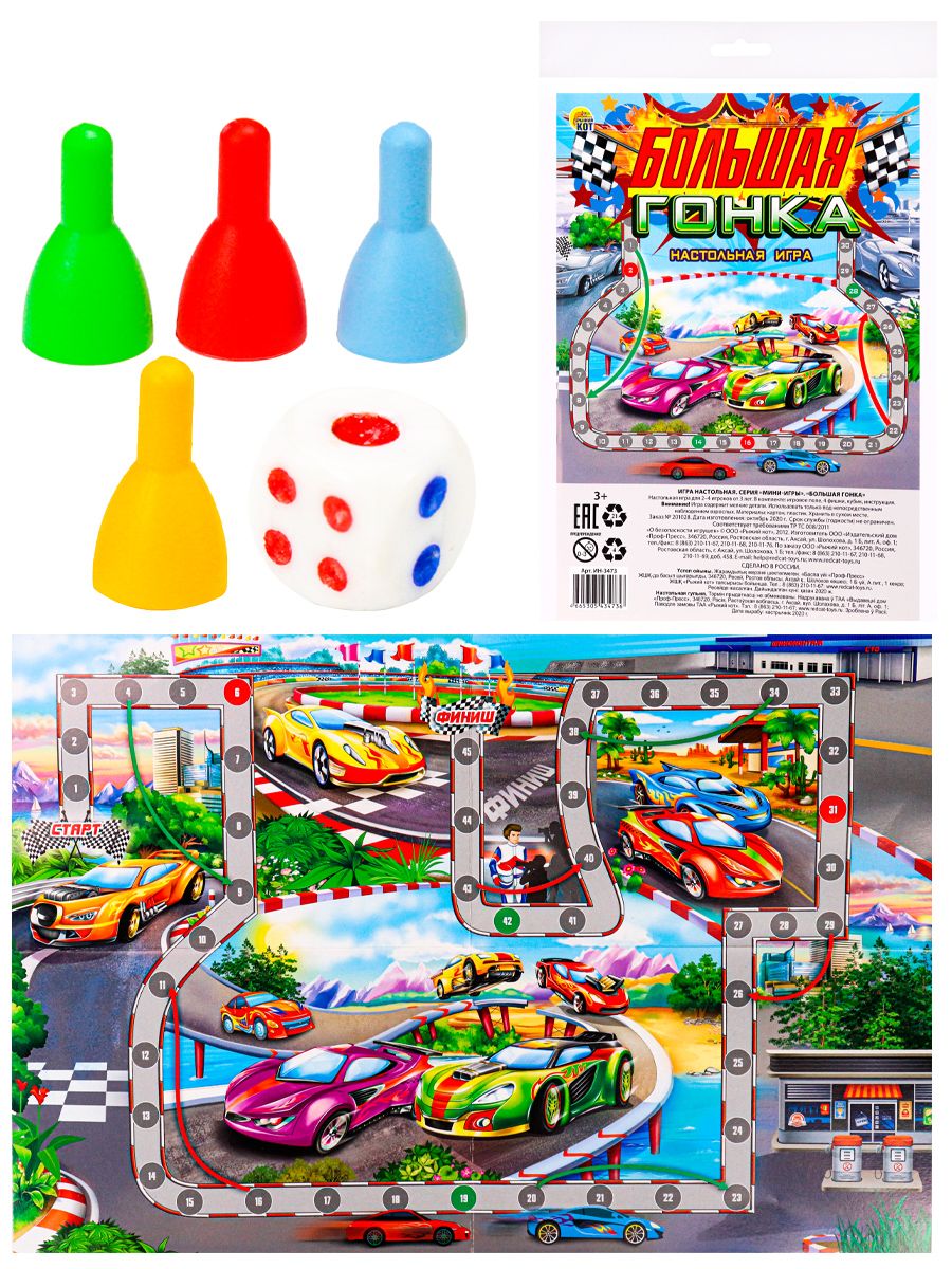 «Большая гонка» — увлекательная настольная игра с невероятными приключениями для весёлого времяпровождения! А лёгкие правила игры осилят даже самые маленькие игроки! С такой настольной игрой ваш ребенок с пользой проведет свой досуг с друзьями, потренируется в знании цифр, простом счете, а также проверит свое везение. Набор изготовлен из качественных и безопасных материалов, не содержащих вредных примесей в составе В наборе: игровое поле, 4 фишки, кубик, инструкция.