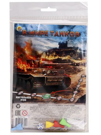 Что может быть интересней, чем игры с друзьями? «В МИРЕ ТАНКОВ — увлекательная настольная игра с невероятными приключениями для весёлого времяпровождения! А лёгкие правила игры осилят даже самые маленькие игроки! В наборе: игровое поле 42х28,5 см, 4 фишки, кубик, инструкция.