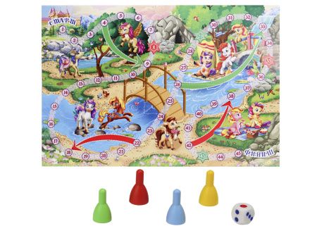Что может быть интересней, чем игры с друзьями? «ВОЛШЕБНЫЙ МИР ПОНИ» — увлекательная настольная игра с невероятными приключениями для весёлого времяпровождения! А лёгкие правила игры осилят даже самые маленькие игроки! В наборе: игровое поле 42х28,5 см, 4 фишки, кубик, инструкция.