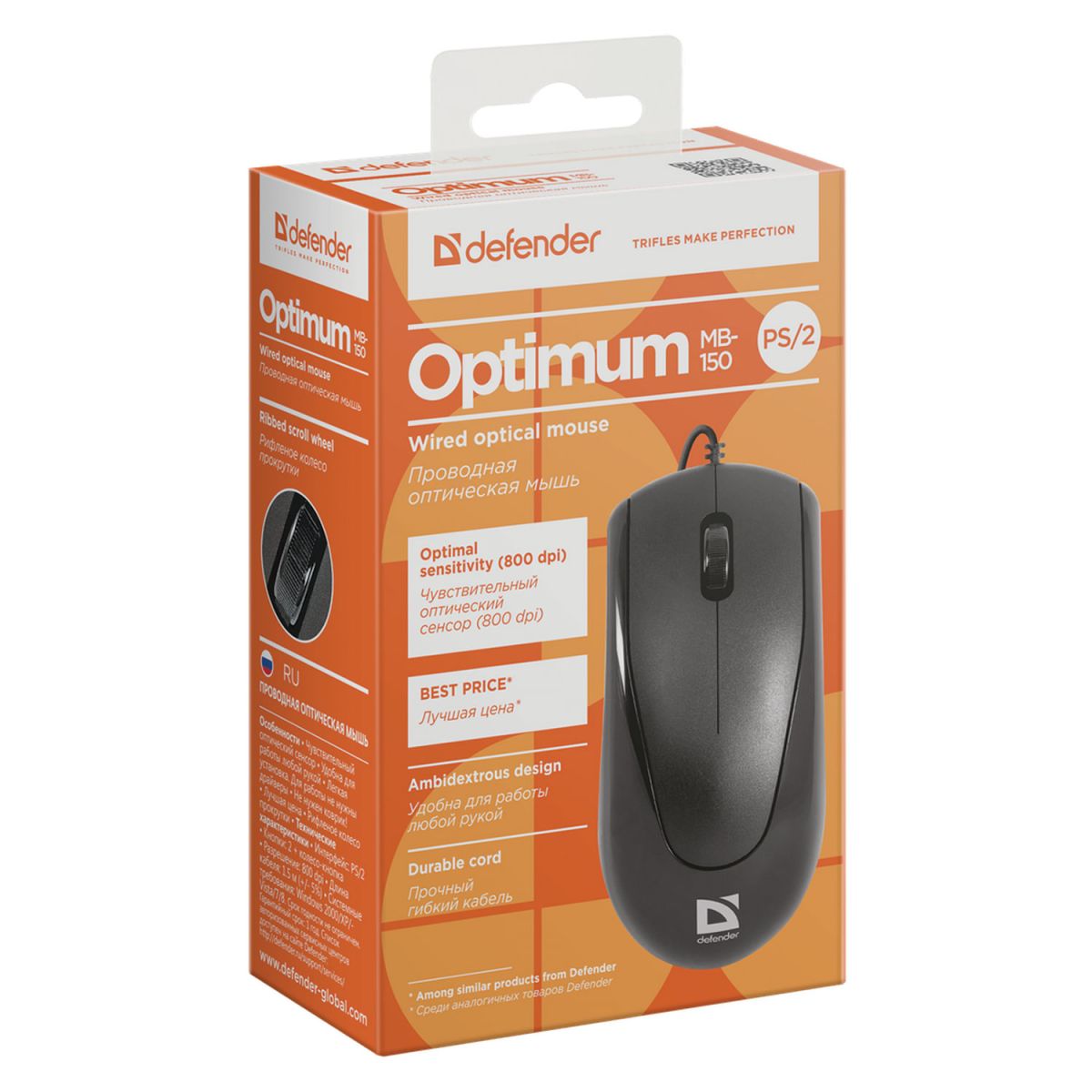 Мышь проводная DEFENDER Optimum MB-150, РАЗЪЕМ PS/2, 2 кнопки + 1 колесо-кнопка, оптическая, черная, 52150