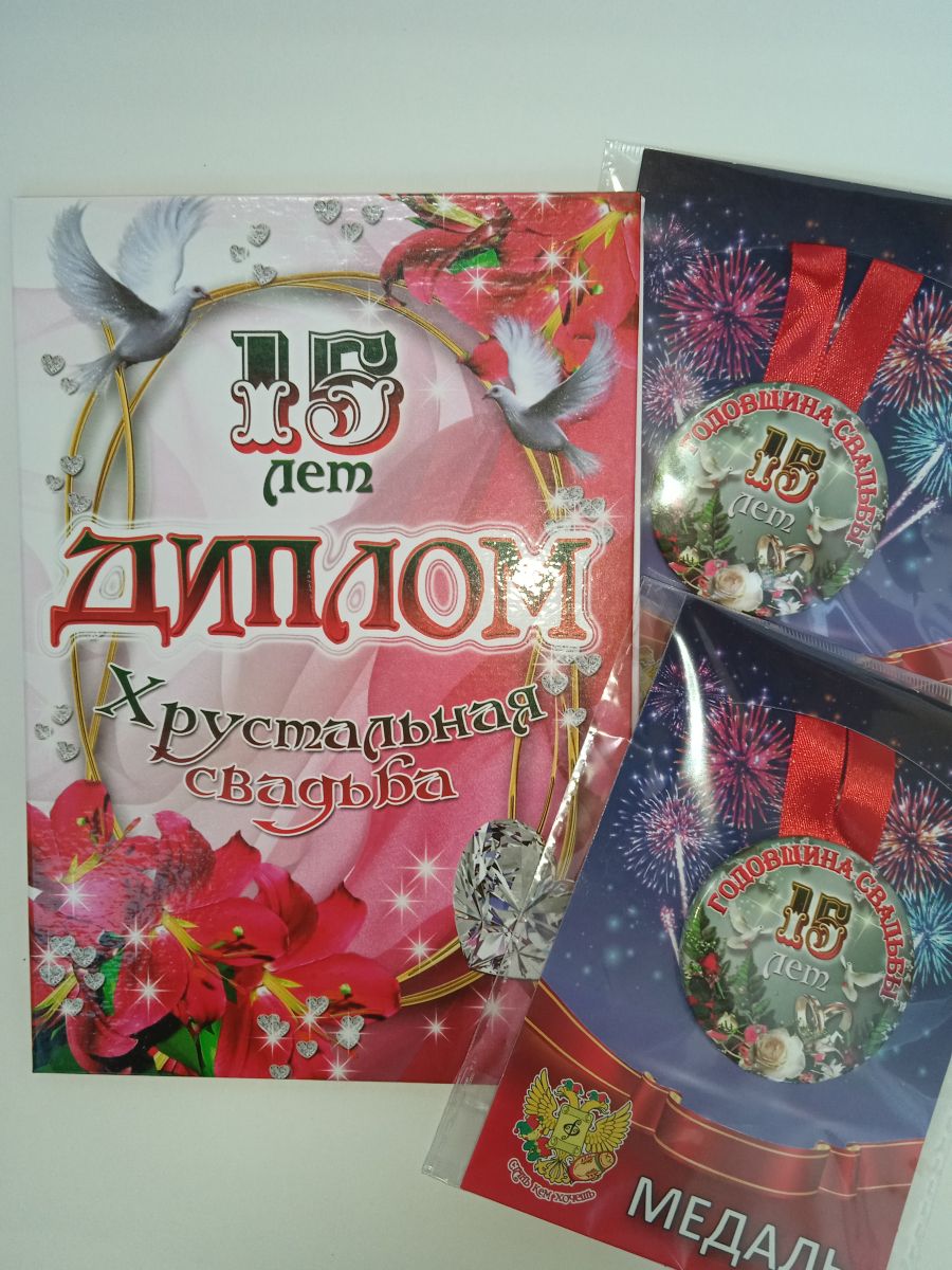 Набор диплом с медалями «Годовщина свадьбы 15 лет»