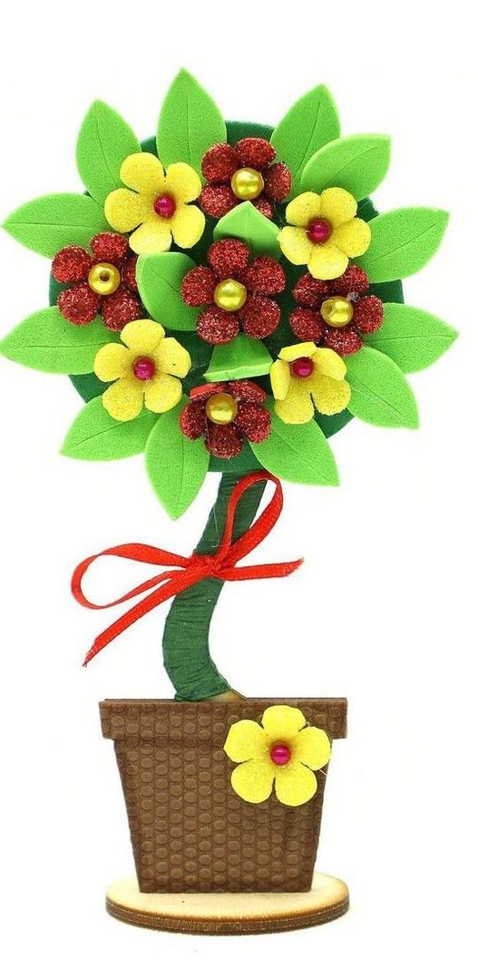 Серия мини-топиарии собрали в себе фрагменты всех видов топиариев. Модели выполнены на базе деревянной заготовки. В составе набора готовая вырубка цветов, листьев, ленты, бусины. Крепление деталей осуществляется на двусторонний скотч, что значительно облегчает процесс сборки. Миниатюрная модель размером 16*7 см прекрасно дополнит интерьер или будет милым подарком близкому человеку.