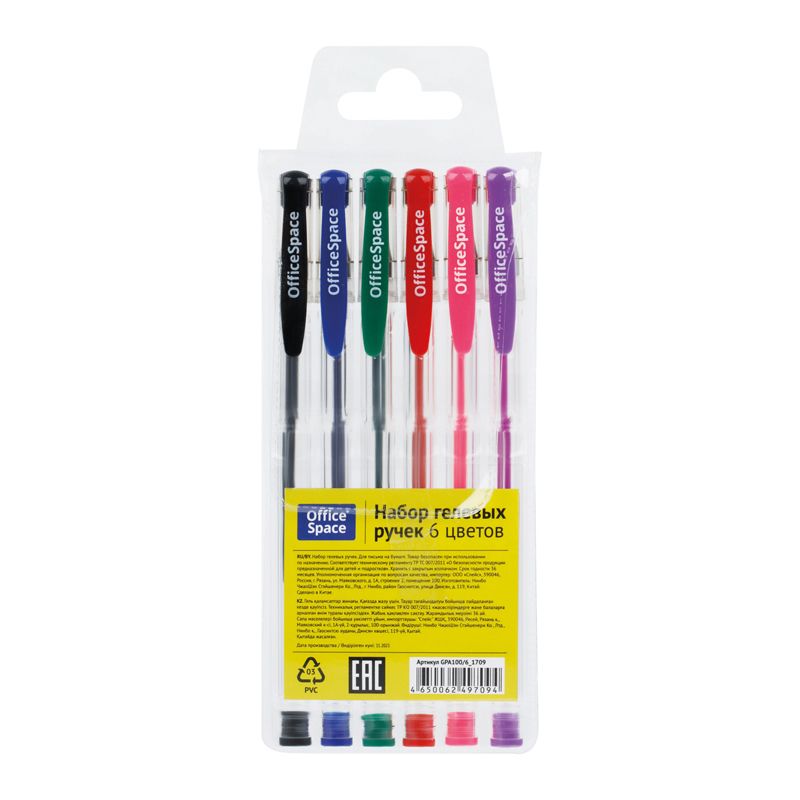 Набор гелевых ручек OfficeSpase 6цв,1мм