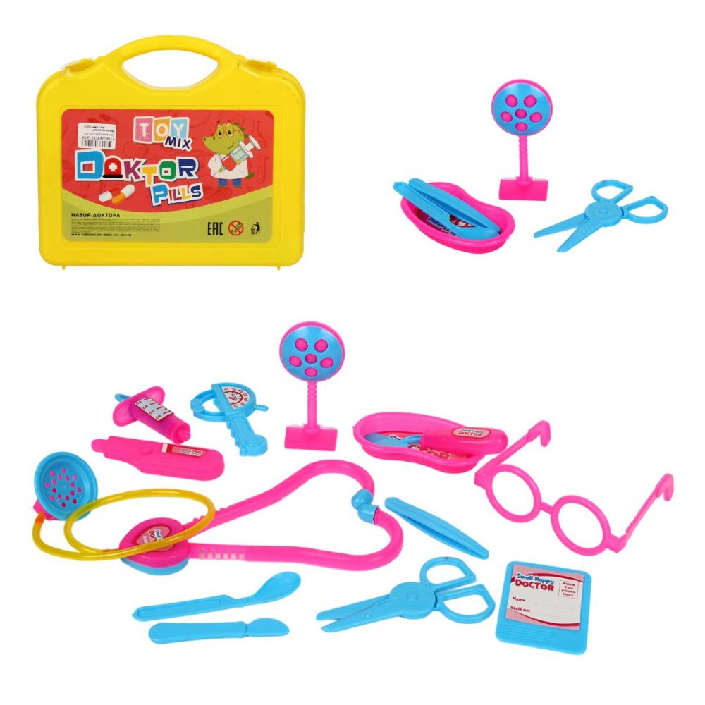 Набор для игры в доктора привлекает внимание не только своим ярким внешним видом, но и функциональностью. Набор состоит (стетоскоп, ножницы, очки, лампа, шприц, пинцет, термометр, ванночка для дезинфекции, скальпель, ложечка, планшет и тонометр) Он содержит основные инструменты врача, благодаря чему ребенок узнает их названия и предназначение. Малыш сможет быстро оказать помощь своим пациентам и, возможно, именно с этой игрушки у ребёнка проснётся интерес к профессии врача. Такие игры отлично развивают воображение, стимулируют интерес к профессиям и дают знания об окружающем мире.