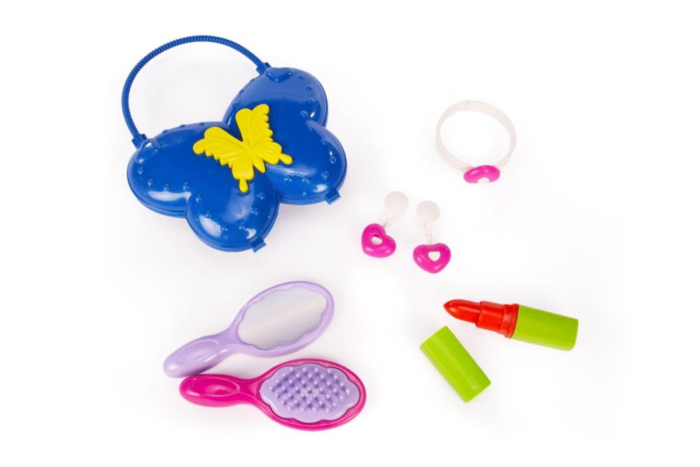 Игровой набор для девочек из серии «Салон красоты» обязательно порадует любую маленькую принцессу. Она будет в восторге, получив в подарок детский набор парикмахера. Набор содержит 7 предметов (косметичка , расческа, зеркало , серьги(2), кольцо , помада) чтобы устроить настоящий салон красоты у себя дома, позволит вашей малышке почувствовать себя настоящим стилистом и помочь навести красоту своим любимым куклам и игрушкам. Яркие и разнообразные аксессуары привьют вашему ребенку чувство вкуса и стиля, научат ухаживать за собой и любимыми вещами, а также приятно разнообразят игровой процесс, способствует развитию воображения и фантазии, коммуникативных и речевых навыков. Набор парикмахера привлекает внимание не только своим ярким внешним видом, но и функциональностью.