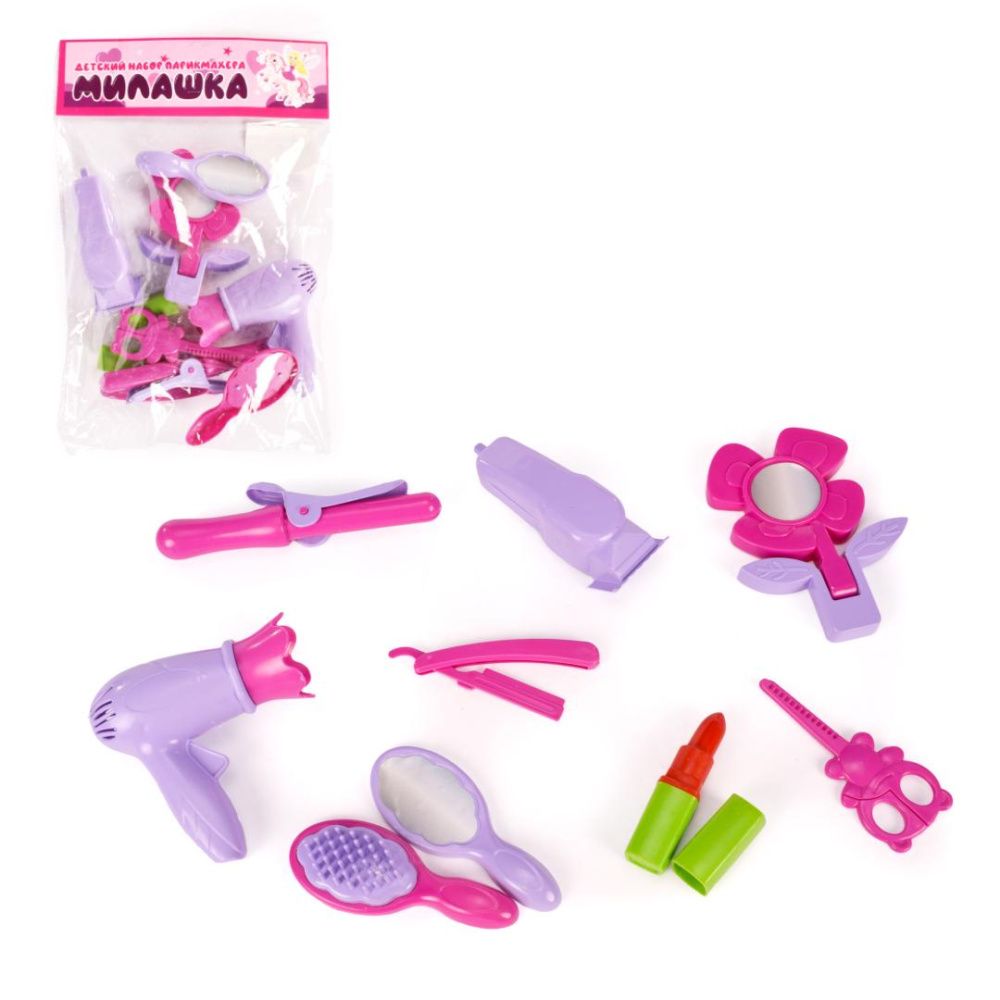 Игровой набор для девочек из серии «Салон красоты» обязательно порадует любую маленькую принцессу. Она будет в восторге, получив в подарок детский набор парикмахера. Набор содержит 11 предметов (плойка , фен , зеркало , расческа, помада , ножницы , машинка для стрижки волос , зеркало - цветочек) чтобы устроить настоящий салон красоты у себя дома, позволит вашей малышке почувствовать себя настоящим стилистом и помочь навести красоту своим любимым куклам и игрушкам. Яркие и разнообразные аксессуары привьют вашему ребенку чувство вкуса и стиля, научат ухаживать за собой и любимыми вещами, а также приятно разнообразят игровой процесс, способствует развитию воображения и фантазии, коммуникативных и речевых навыков. Набор парикмахера привлекает внимание не только своим ярким внешним видом, но и функциональностью.