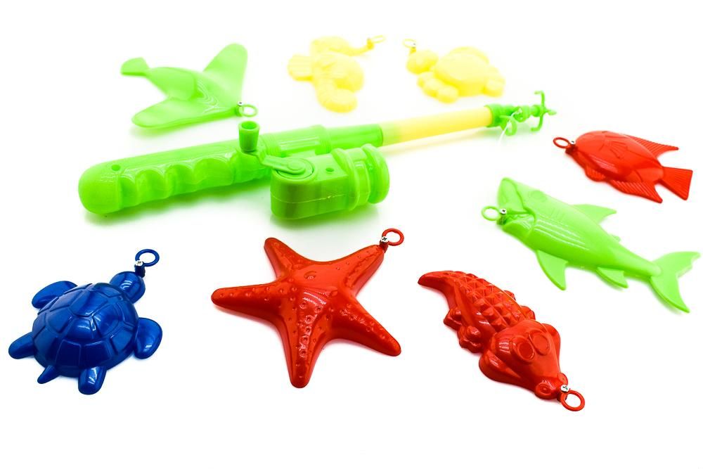 Игровой набор Рыбалка для детей включает в себя удочку и 8 забавных пластиковых морских обитателя. Рыбки располагаются на любой подходящей для этого поверхности и ловятся на крючок за специальное "ушко". Игра поможет крохе почувствовать себя настоящим рыбаком. Играть с набором можно даже принимая ванну. Яркие рыбки и удобная удочка сделают купание увлекательным развлечением. Чтобы начать игру, опустите рыбок в воду, а затем с помощью удочки поочерёдно подцепляйте морских обитателей на крючок и отправляйте их на сушу. Веселье гарантировано. Занимательная игра поможет малютке развить ловкость, мелкую моторику, тактильные ощущения, мышление и воображение, а также привнесёт азарт и веселье в детские игры.