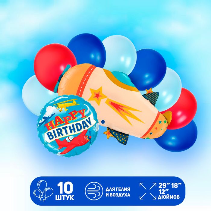 Набор шаров «Самолёт», латекс, фольга, 10 шт.