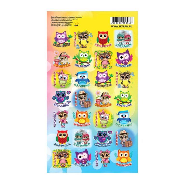 Наклейки для оценок ПС 11*17 Совушки уп.20шт
