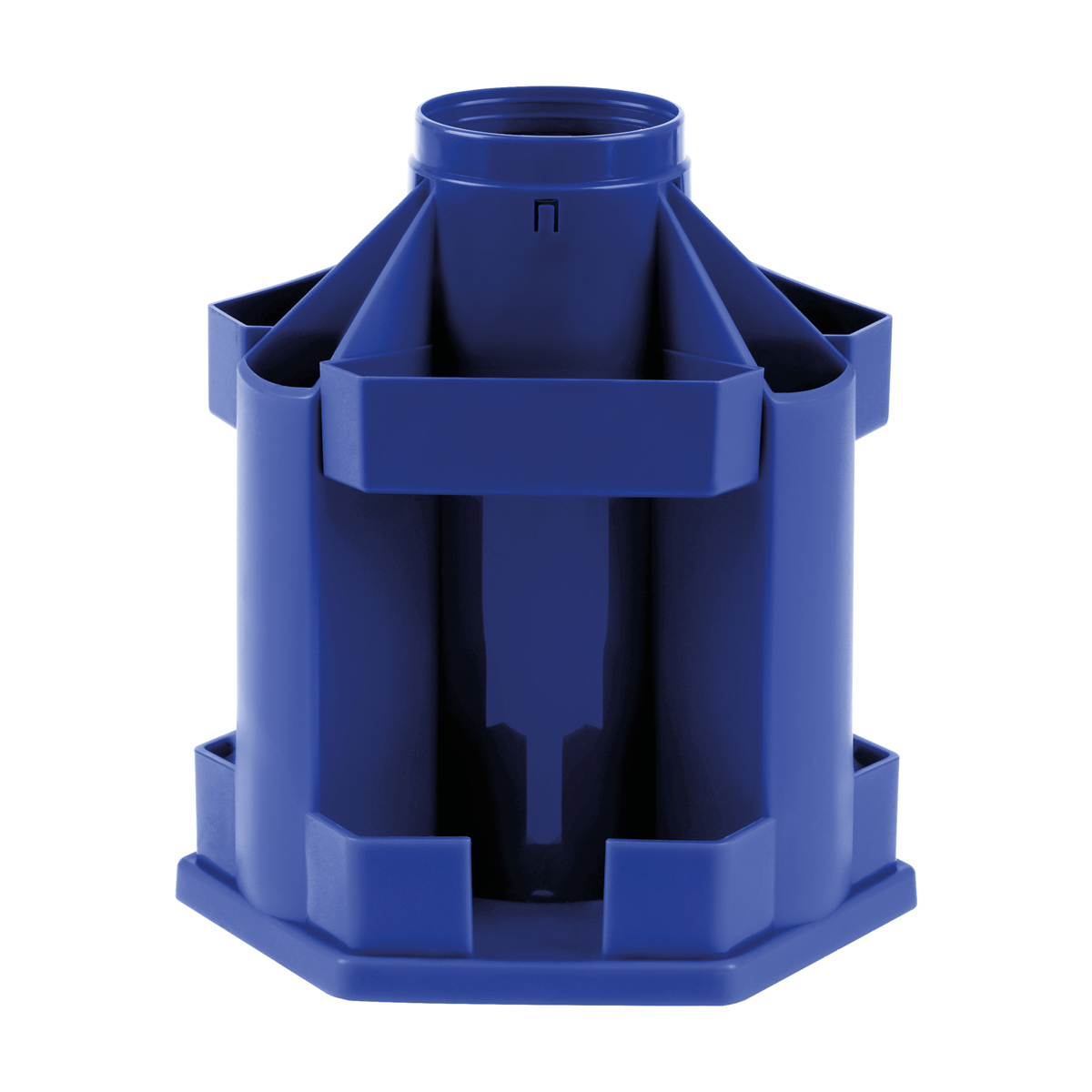 Настольная подставка СТАММ предназначена для хранения канцелярских принадлежностей. Изделие размером 12*14*17,5 см обладает классическим дизайном. Вместительная и устойчивая подставка имеет 10 отделений разной высоты и формы. Изготовлена из качественного полипропилена. Свободно вращается на 360 градусов. Поставляется без наполнения. Цвет изделия: синий.