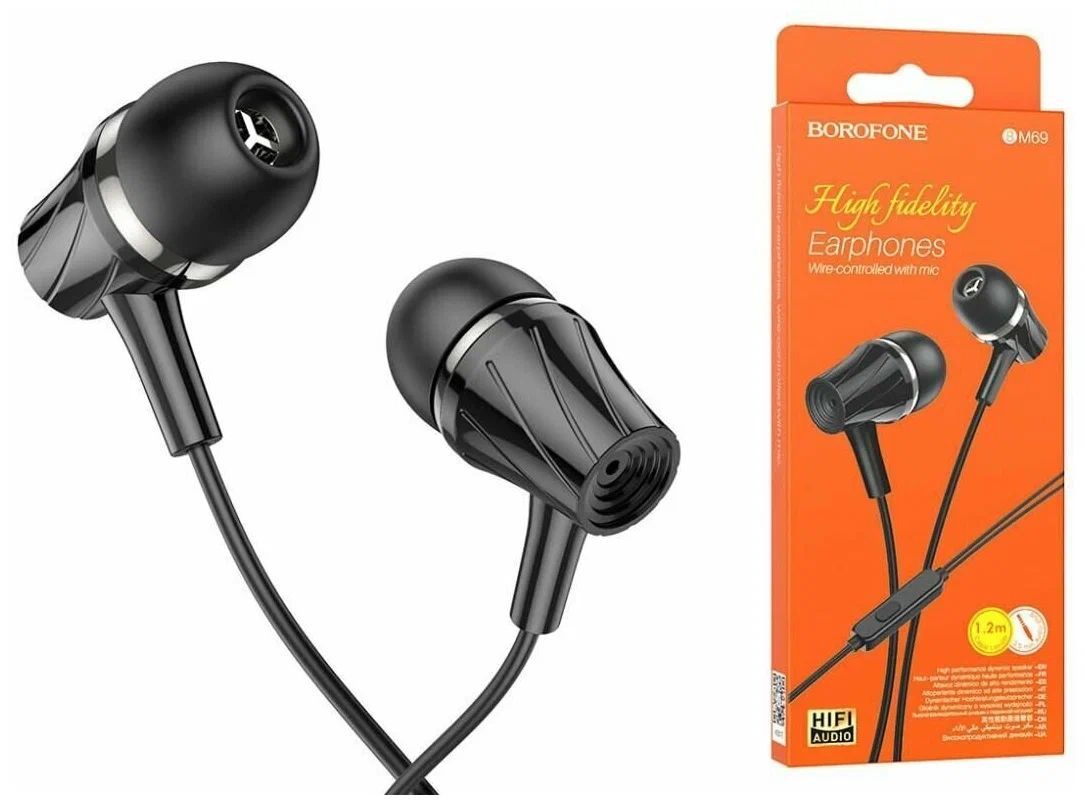 Наушники Borofone BM69 Black Universal,микроф.кнопка ответа