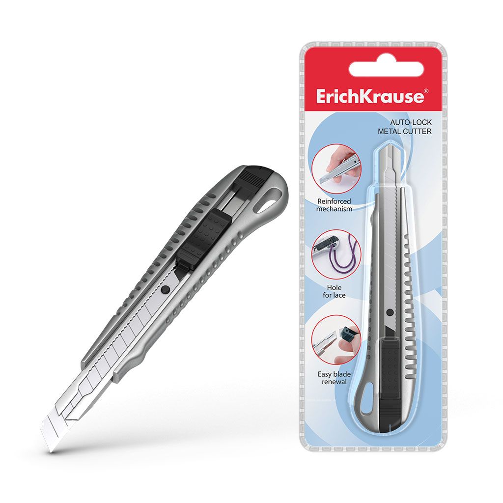 Нож канцелярский с автоматической фиксацией лезвия ErichKrause® металлический, 9мм