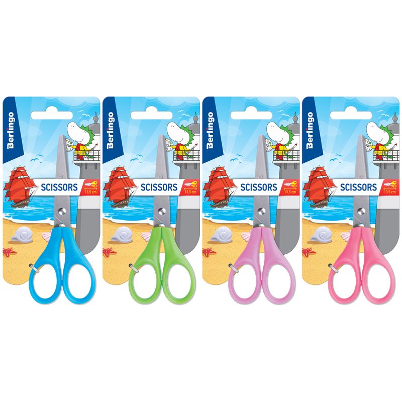 Ножницы детские Berlingo с линейкой. Длина: 13,5 см. Предназначены для резки бумаги и картона. Длина лезвия: 70мм, длина режущей части: 50мм. Ножницы для детского творчества выполнены из качественной нержавеющей стали. Закруглённые концы лезвий обеспечивают безопасное использование.