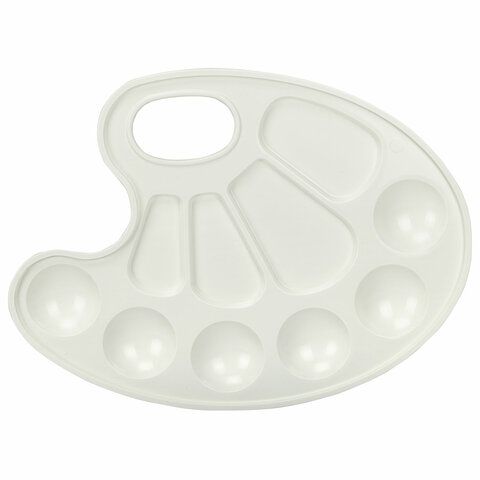 Палитра предназначена для смешивания красок. Удобна и проста в использовании. Позволяет получать новые оттенки путем смешивания цветов. По краю палитры есть 6 ячеек для размещения красок, а в центре палитры 4 отделения для смешивания.