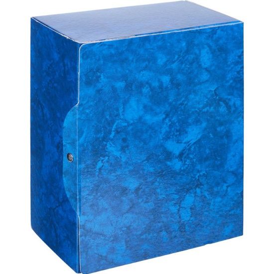Короб Архивный на кнопке. Материал: плотный цветной ламинированный картон этикетка для маркировки на внутренней и внешней сторонах коробаЦвет: синий. Поставляется в разобранном виде.