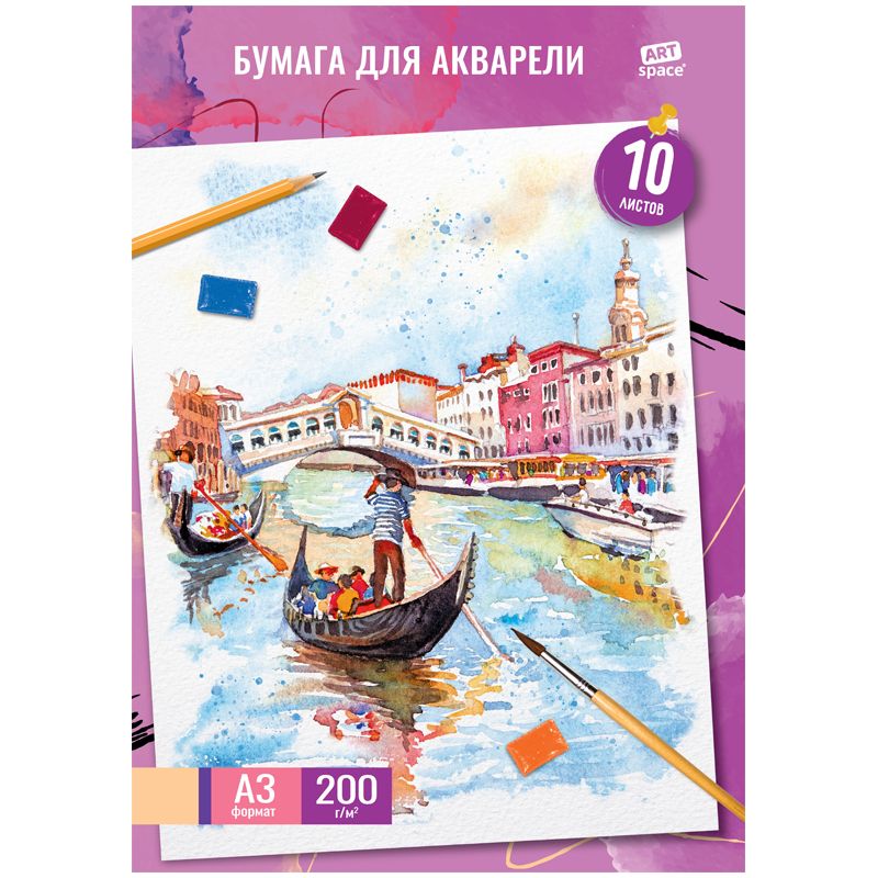 Папка для акварели, 10л., А3 ArtSpace«Венеция», 200г/м2