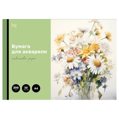 Папка для акварели, 10л., А4 BG «Полевые цветы», 200г/м2