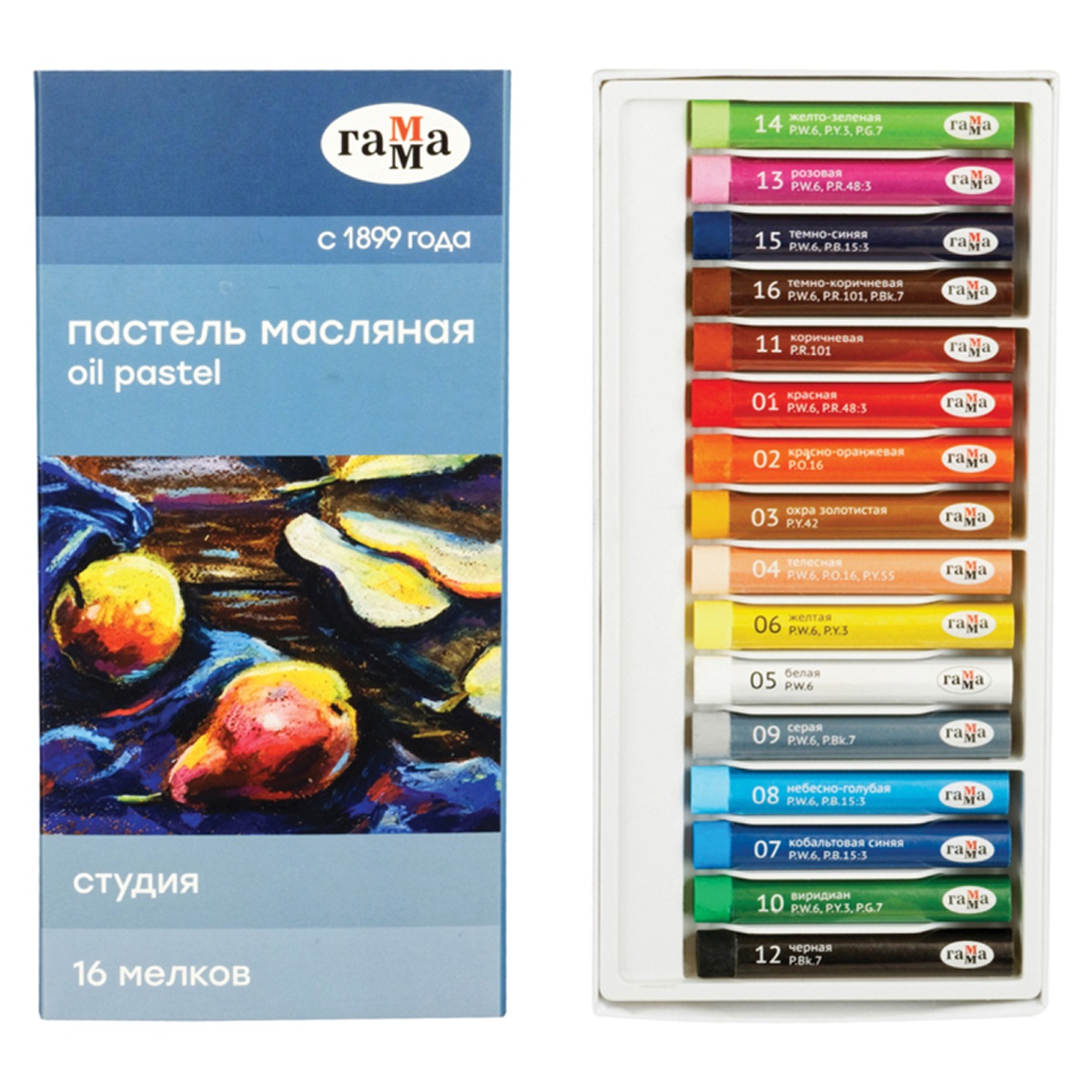 Пастель масляная Гамма «Студия», 16 цветов, картон. упак.