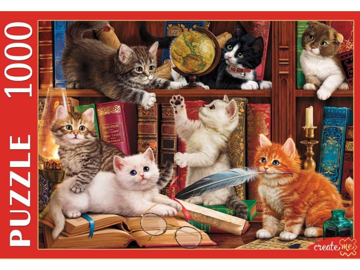 ПАЗЛЫ 1000 элементов. П1000-9660 КОТЯТА НА КНИЖНОЙ ПОЛКЕ