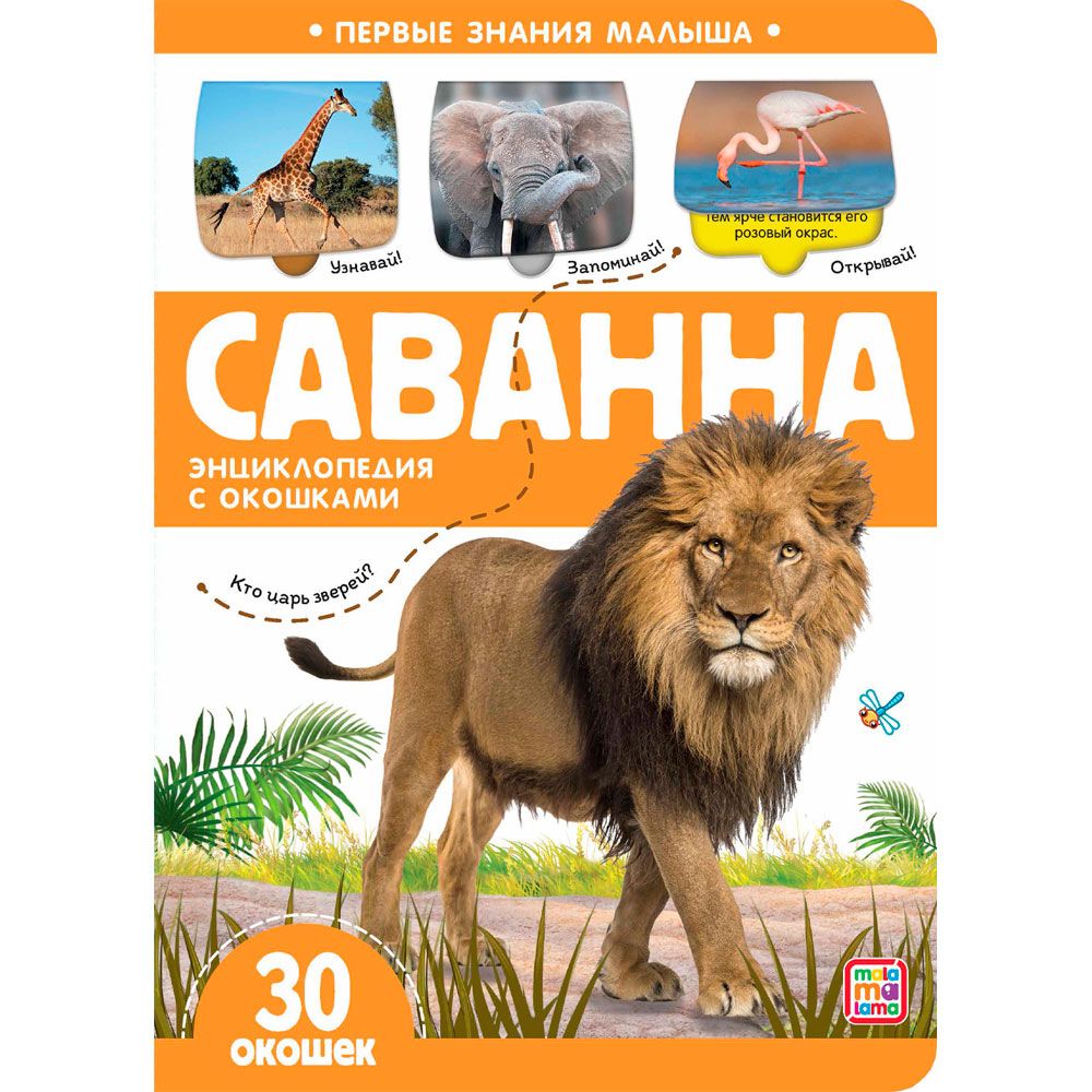 Книги серии «Первые знания малыша» от торговой марки Malamalama — это красочный путеводитель по окружающему миру. Он поможет не просто приятно провести время, но и получить новые знания: в качестве иллюстраций в книгах использованы фотографии и реалистичные изображения. В книге «Саванна» это позволит ребёнку прочитать об экзотических животных и сразу увидеть, как они выглядят в природе. А окошки с интересными фактами будут подогревать интерес к подробному изучению каждой страницы.