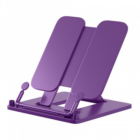 Складная подставка с фиксатором для книг. Позволяет расположить книгу под удобным углом наклона (7 углов). Держатель, расположенный в нижней части, надежно фиксирует страницы. Ширина подставки — 235мм, высота спинки — 190мм.