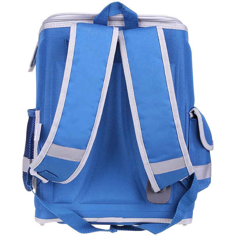 Ранец -"трансформер" с одним отделением на молнии, фронтальным карманом на молнии и двумя боковыми карманами; внутри отделения - два разделителя с утягивающей резинкой; корпус рюкзака, спинка, дно и крышка выполнены из EVA; лямки анатомической формы, регулируются по длине; для безопасности рюкзак снабжен светоотражающими элементами.345*260*130 мм. Вес 650г.