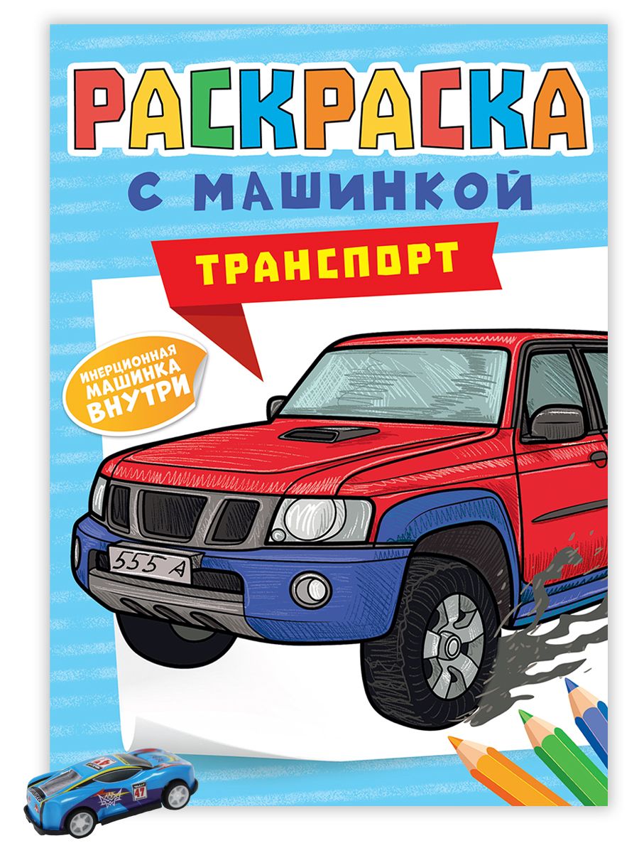 Раскраска с машинкой - отличный подарок для каждого мальчишки, увлекающегося транспортом. Интересные раскраски и инерционная машинка в комплекте доставят радость любому читателю! Такой комплект подойдет юному художнику и порадует разнообразными картинками для творческих занятий. В серии представлены 4 вида раскрасок, в которых вы найдете разные машинки и картинки для раскрашивания: роботы, специальный транспорт, спортивные автомобили и многое другое!