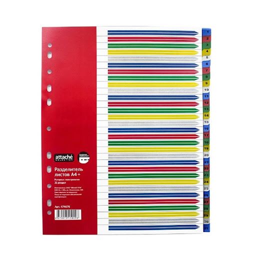 Разделитель листов 1-31 ,цв.пласт. А4+, Attache Selection