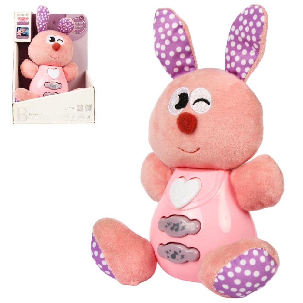 Развивающие игрушки на батарейках откроют дверь в мир первоначальных знаний для ваших малышей. Полностью интерактивные предметы с множеством кнопочек, ручек и переключателей помогут ребенку в развитии мелкой моторики, тактильных ощущений и любознательности, научат различать цвета и формы. Издаваемые такими игрушками веселые звуки и песенки, вкупе с сияющими лампочками, развлекут, подарят хорошее настроение и научат концентрировать внимание. Этот милый зайчик обладает световыми и звуковыми эффектами: поёт песенки и убаюкивает малыша.