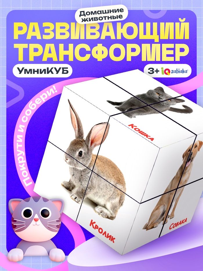 «Умникуб: Домашние животные» — развивающий трансформер для детей от 3 лет. С увлекательной игрушкой ребёнок запомнит названия домашних животных, разовьёт память и пополнит словарный запас.