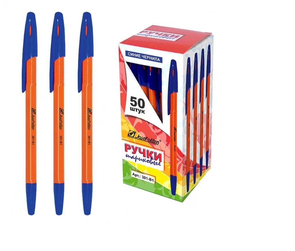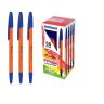 Ручка шариковая, оранжевый корпус. Длина ручки 150мм. Длина стержня 140мм. Толщина пишущего узла 0.7мм. Линия письма 0.35 мм. Цвет чернил синий. В картонной упаковке 50 шт.