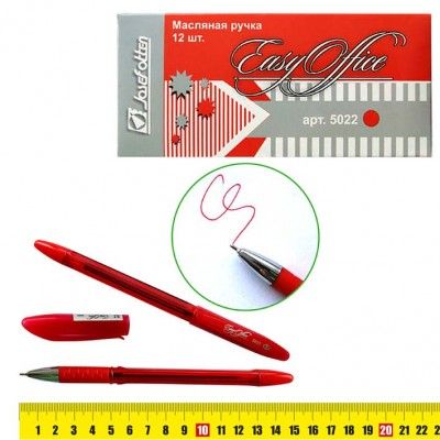 Ручка шариковая 0.7 мм красная масл., резиновый грип 5022 EasyOffice