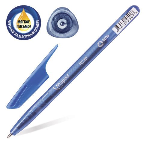 Ручка шариковая масляная MAPED (Франция) "Green Ice", СИНЯЯ, трехгранная, узел 1 мм, линия письма 0,6 мм