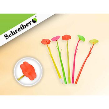 Ручка шариковая " Schreiber " Цветок синяя 0,7мм цветной силиконовый корпус