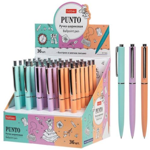 Ручка шариковая автоматическая " Hatber " Punto синяя 0,7мм, картонный дисплей-витрина