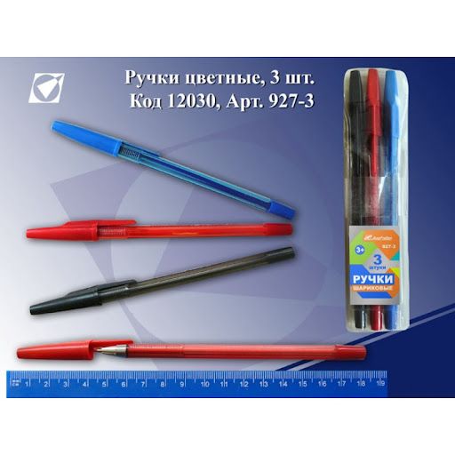 Ручки , цветные 3цв, 0,7*142мм, прозр.корп. 927-3 J.Otten