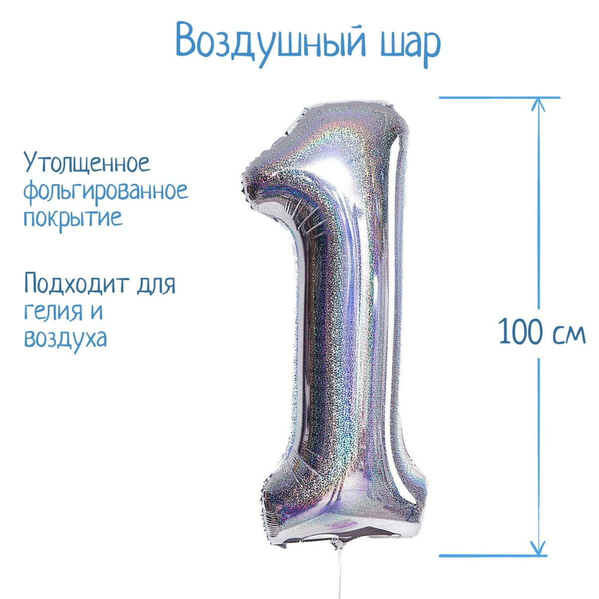 Шар фольгированный 40" «Цифра 1», голография, серебро