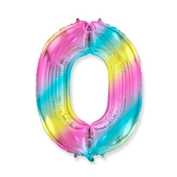Шар ЦИФРА 0 40'' радуга металлик 102 см /FM