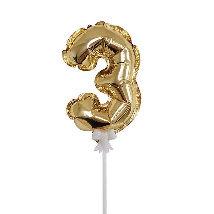 Шар ЦИФРА 3 7" золото /Gold /18 см (топпер)/К