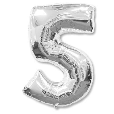 Фигурный шар в виде цифры пять серебряного цвета. Шар продается НЕНАДУТЫМ. Рекомендуем надувать его гелием. Высота шара в надуве: 101 см
