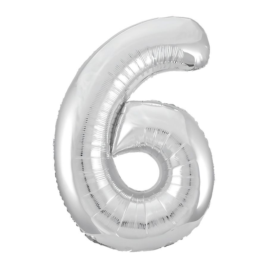 Шар ЦИФРА 6 40'' серебро /Silver /102 см/Ag