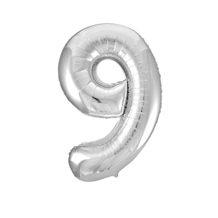Шар ЦИФРА 9 17" серебро /Silver /43 см/К
