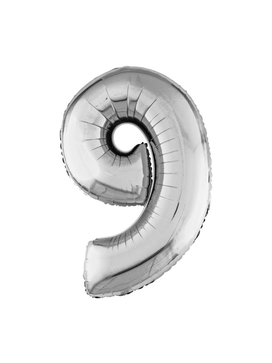 Шар ЦИФРА 9 40'' серебро /Silver /102 см/Ag