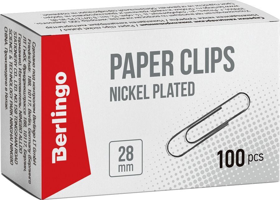 Никелированные канцелярские скрепки "Berlingo" стандартной круглой формы. Не ржавеют, не пачкают бумагу, обеспечивают надежное скрепление.