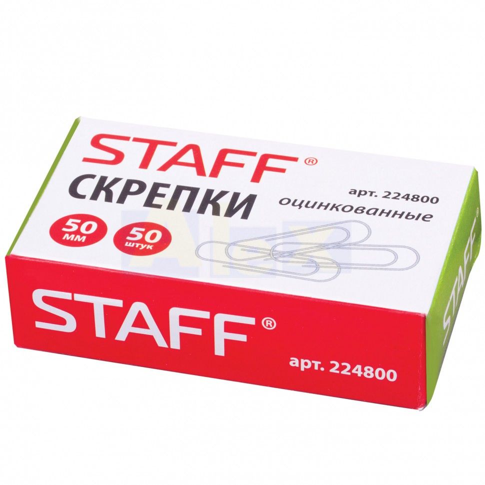 Скрепки STAFF эконом,50мм,оцинков.,50шт,в карт.коробке.224800,РОССИЯ