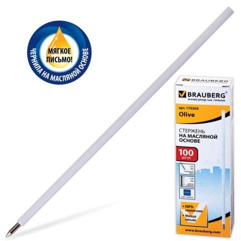 Стержень шариковый масляный BRAUBERG 139мм, 0,5мм, синий, 170203